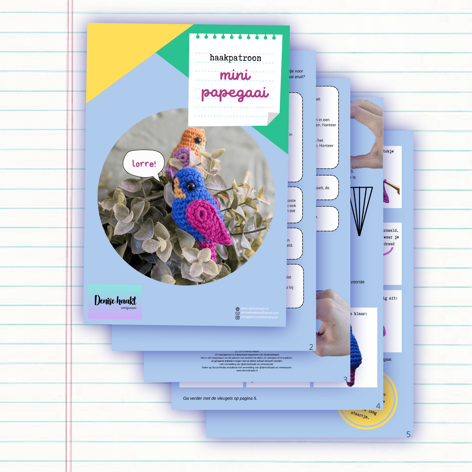 – een download met het haakpatroon van het mini papegaaitje in pdf-formaat;